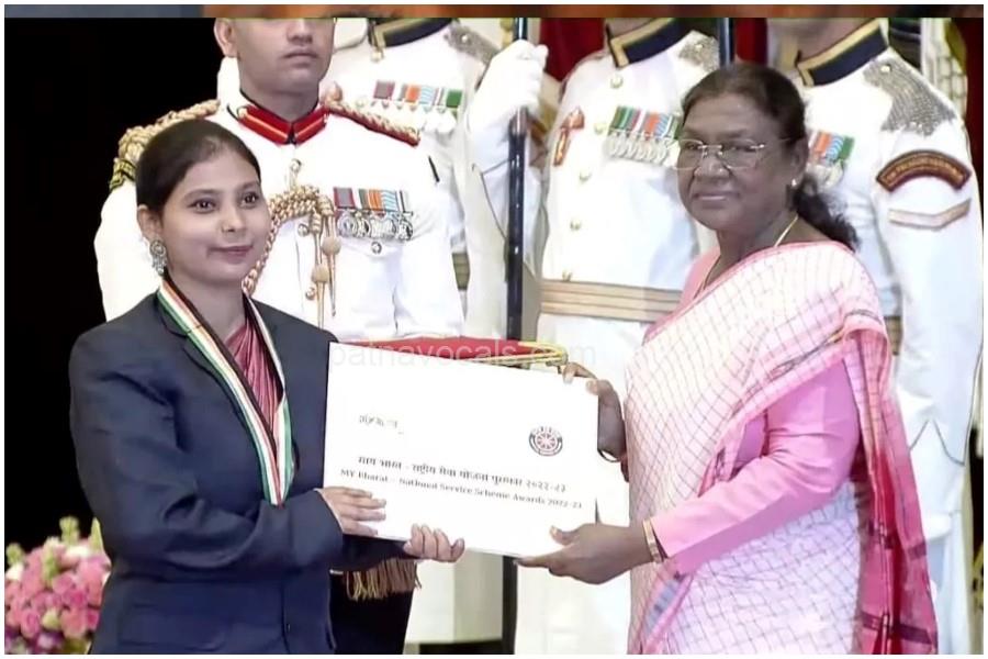 पटना की सौम्या प्रकाश को राष्ट्रपति द्रौपदी मुर्मू ने माई भारत-एनएसएस अवार्ड से सम्मानित किया