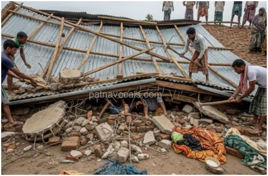 पटना न्यूज डेस्क: पटना के पास दानापुर में एक दर्दनाक हादसे ने पूरे इलाके को झकझोर दिया। रविवार देर रात मानस नया पानापुर गांव में मकान की छत गिरने से एक ही परिवार के पांच लोगों की मौत हो गई। यह इलाका सारण और पटना की सीमा से सटे दियारा क्षेत्र में आता है। मृतकों की पहचान मोहम्मद बबलू (35), उनकी पत्नी रोशन खातून (30), बेटी रुसार (12), बेटा चांद (10) और छोटी बेटी चांदनी (2) के रूप में हुई है। हादसे के बाद घर का मलबा बिखरा पड़ा है और पूरे गांव में मातम पसरा है।