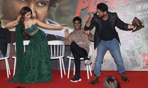 Allu Arjun and Rashmika Mandanna at Press Conference Of Film Push...